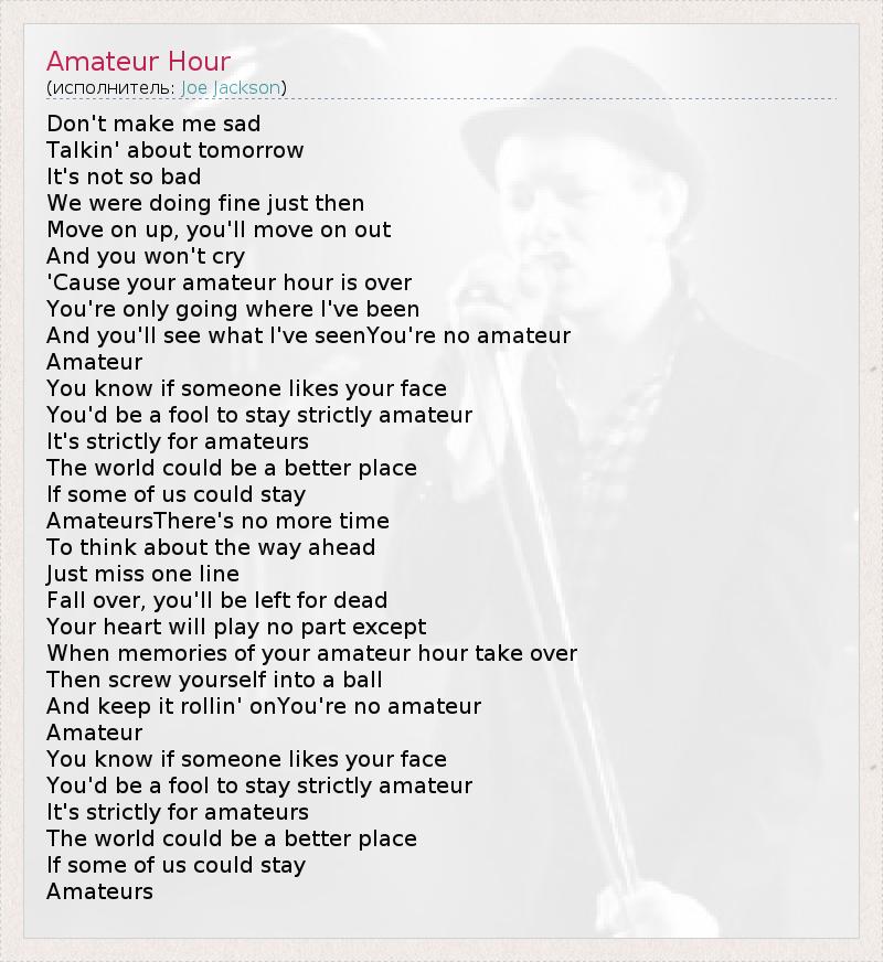 А как ты думаешь, о чем песня "Amateur Hour" ?