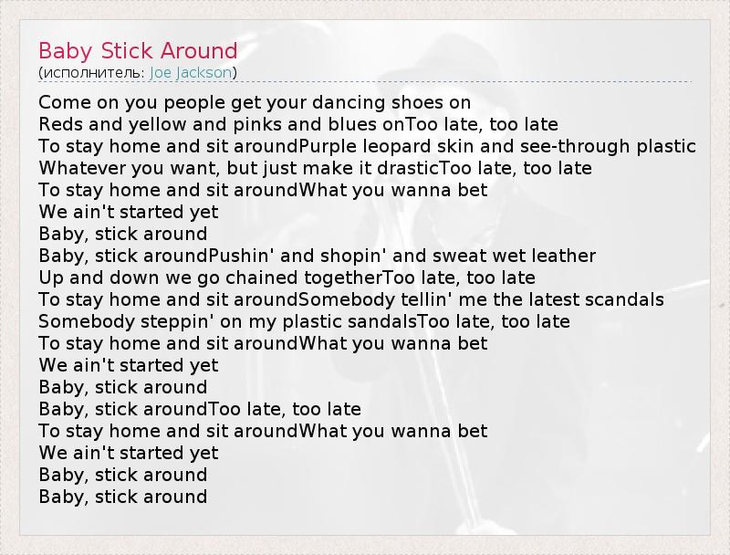 А как ты думаешь, о чем песня "Baby Stick Around" ?