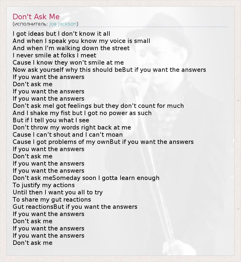 А как ты думаешь, о чем песня "Don't Ask Me" ?