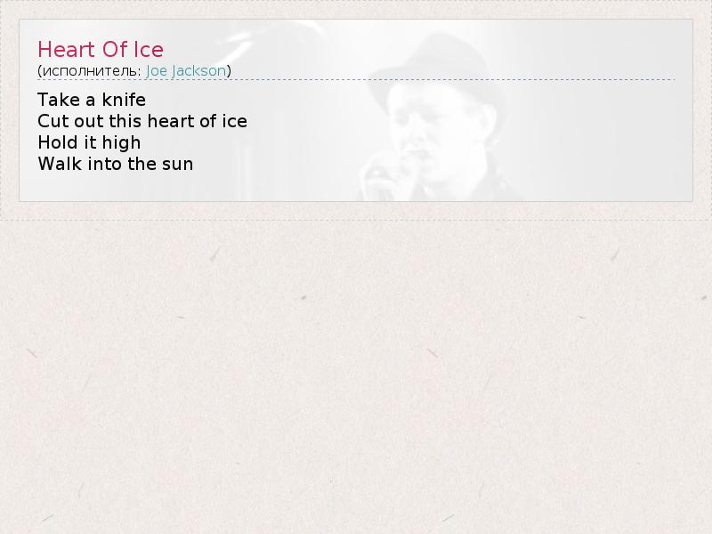 А как ты думаешь, о чем песня "Heart Of Ice" ?