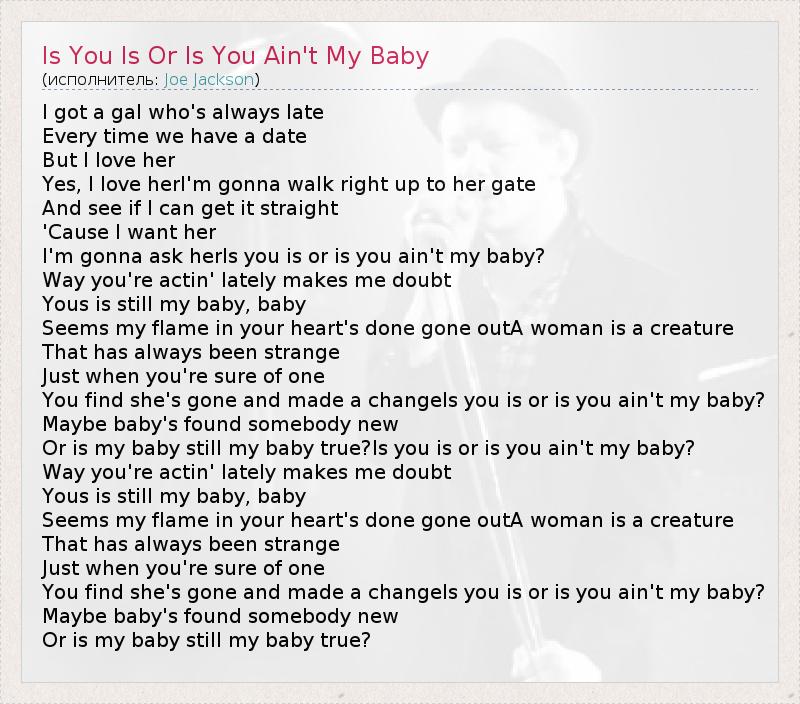 Or is my baby still my baby true?Is you is or is you ain't my baby?