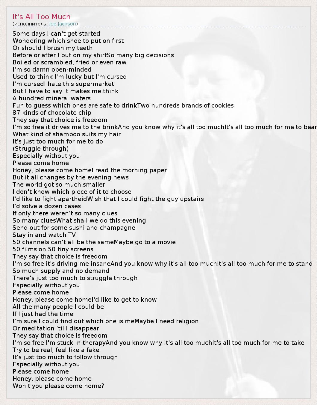 А как ты думаешь, о чем песня "It's All Too Much" ?