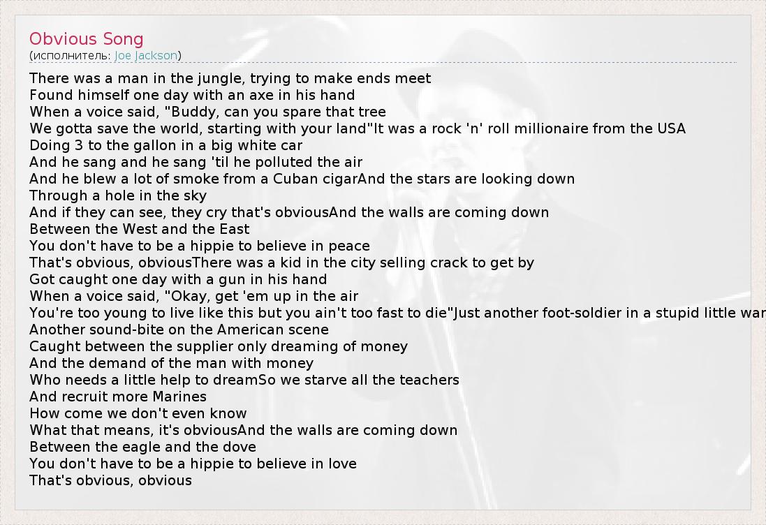 А как ты думаешь, о чем песня "Obvious Song" ?