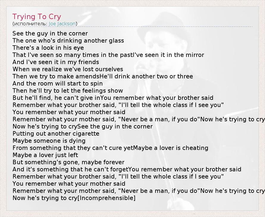 А как ты думаешь, о чем песня "Trying To Cry" ?
