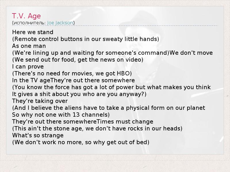 А как ты думаешь, о чем песня "T.V. Age" ?