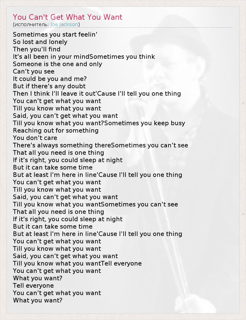 ГлавнаяИсполнителиJoe JacksonYou Can't Get What You Want