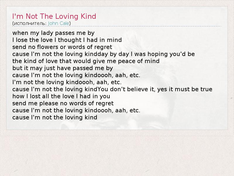 А как ты думаешь, о чем песня "I'm Not The Loving Kind" ?