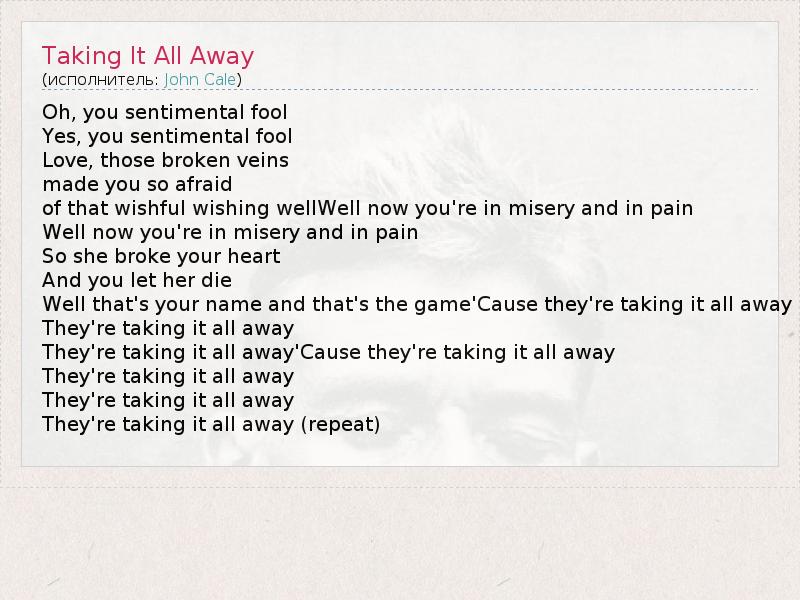 А как ты думаешь, о чем песня "Taking It All Away" ?