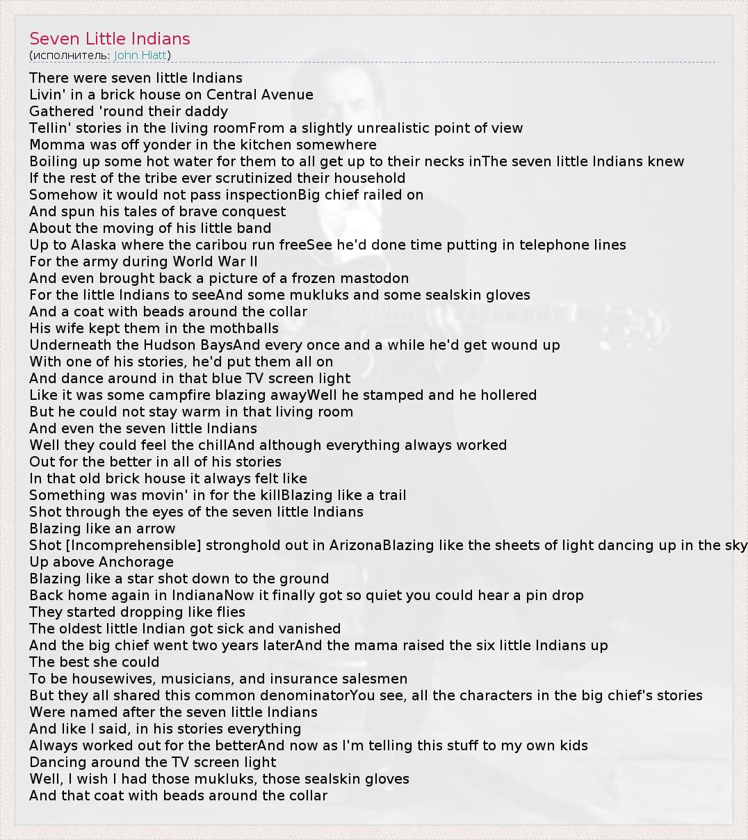 А как ты думаешь, о чем песня "Seven Little Indians" ?