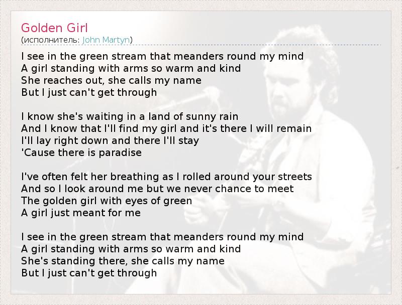 А как ты думаешь, о чем песня "Golden Girl" ?