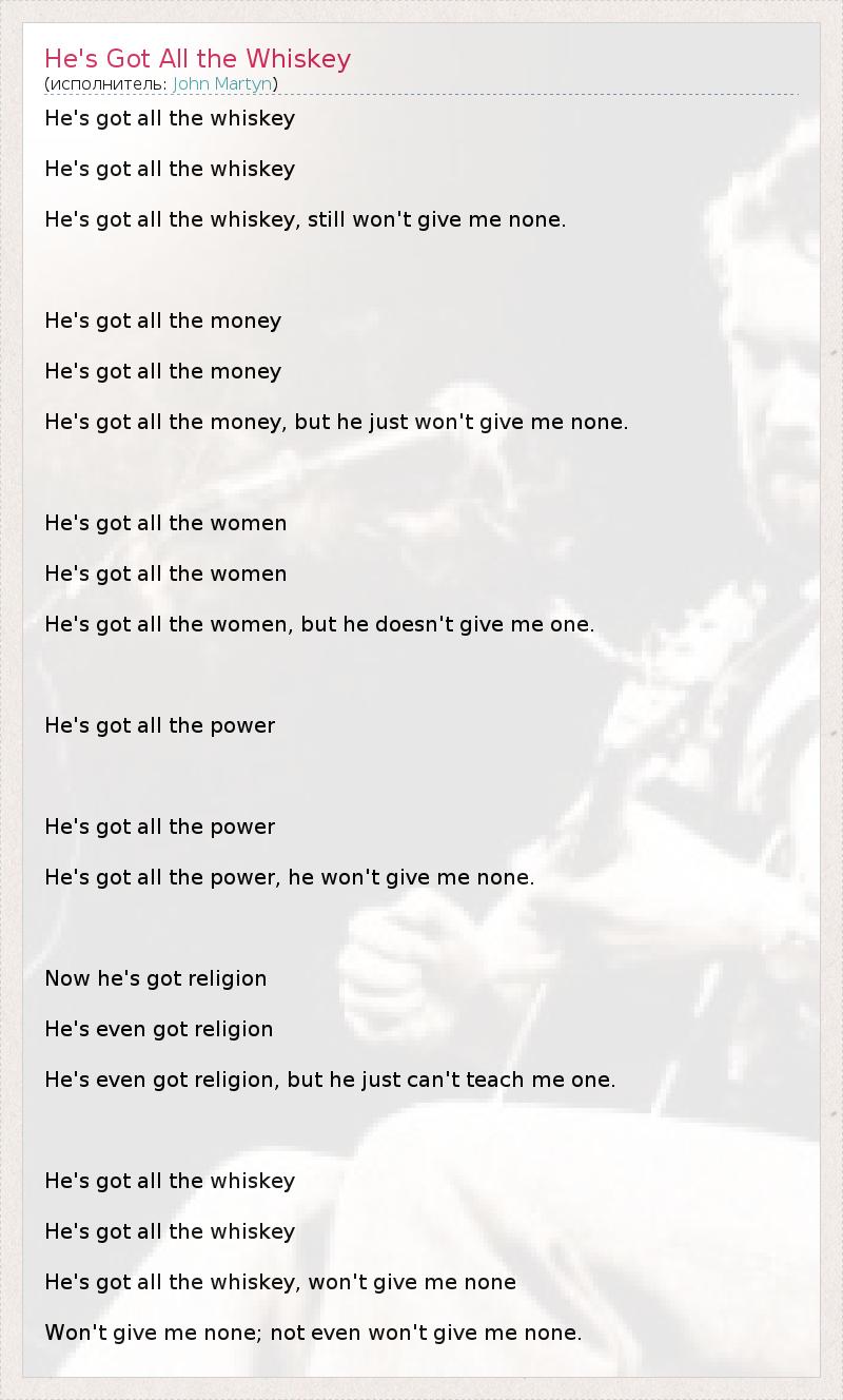 А как ты думаешь, о чем песня "He's Got All the Whiskey" ?