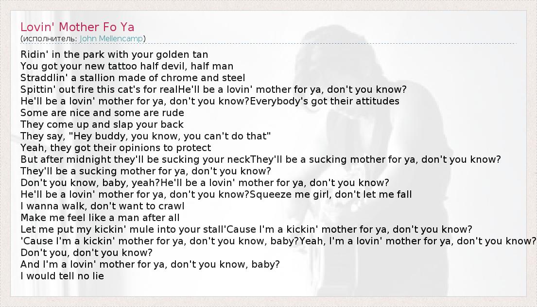 А как ты думаешь, о чем песня "Lovin' Mother Fo Ya" ?