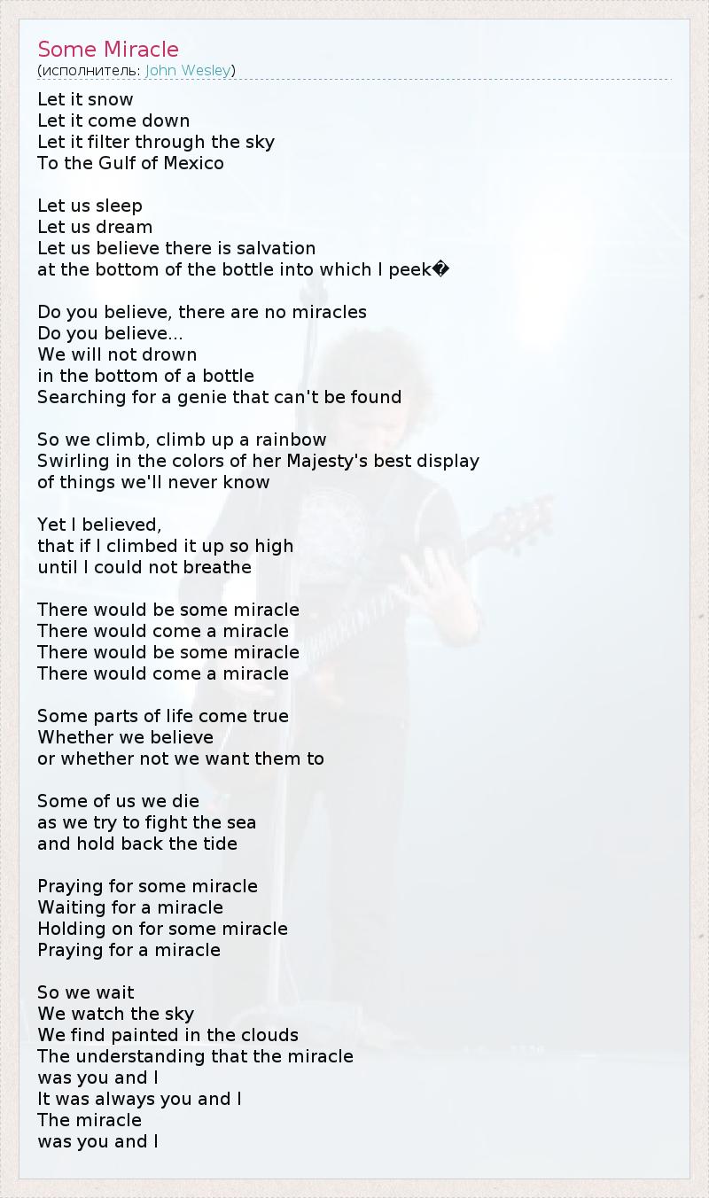 А как ты думаешь, о чем песня "Some Miracle" ?