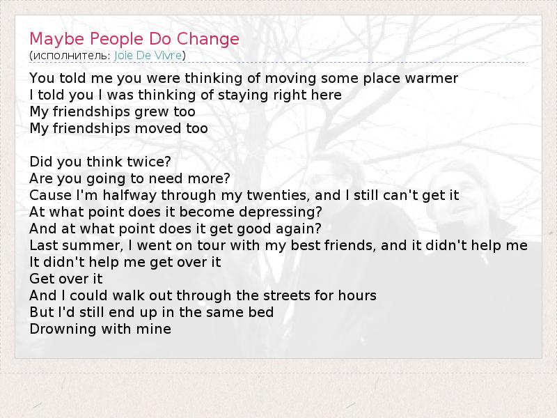А как ты думаешь, о чем песня "Maybe People Do Change" ?