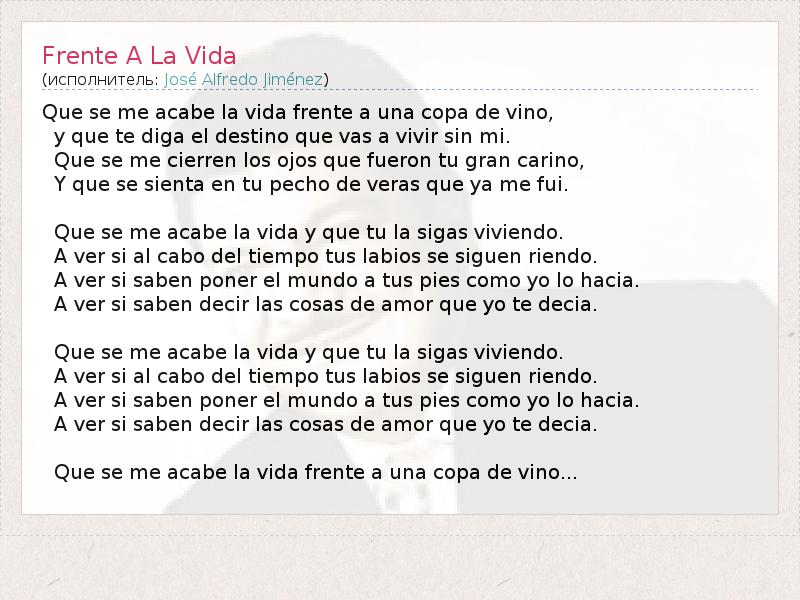 А как ты думаешь, о чем песня "Frente A La Vida" ?