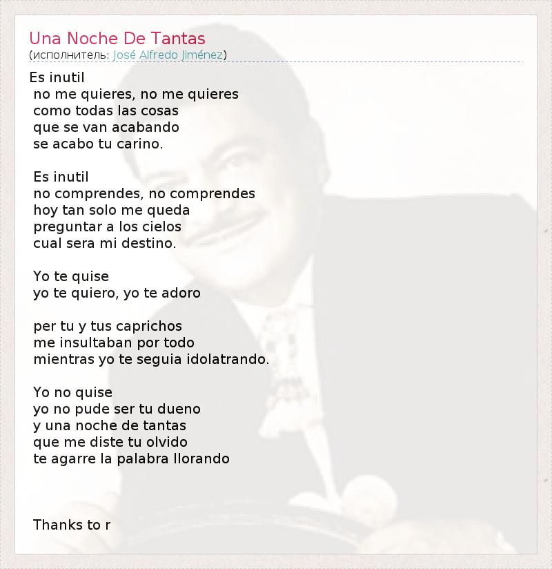 А как ты думаешь, о чем песня "Una Noche De Tantas" ?