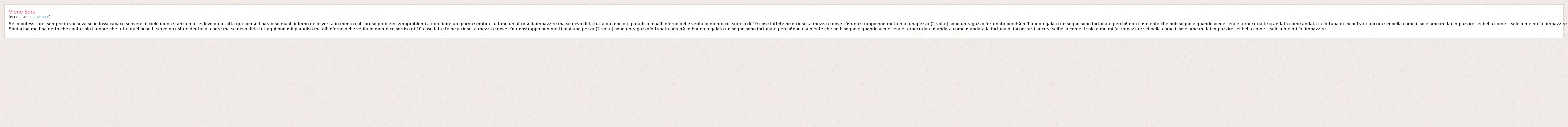Se io potessisarei sempre in vacanza se io fossi capace scriverei il cielo inuna stanza ma se devo dirla tutta qui non и il paradiso maall'inferno delle veritа io mento col sorriso problemi zeroproblemi a non finire un giorno sembra l'ultimo un altro и daimpazzire ma se devo dirla tutta qui non и il paradiso maall'inferno delle veritа io mento col sorriso di 10 cose fattete ne и riuscita mezza e dove c'и uno strappo non metti mai unapezza (2 volte) sono un ragazzo fortunato perchй m'hannoregalato un sogno sono fortunato perchй non c'и niente che hobisogno e quando viene sera e tornerт da te и andata come andata la fortuna di incontrarti ancora sei bella come il sole ame mi fai impazzire sei bella come il sole a me mi fai impazzire.