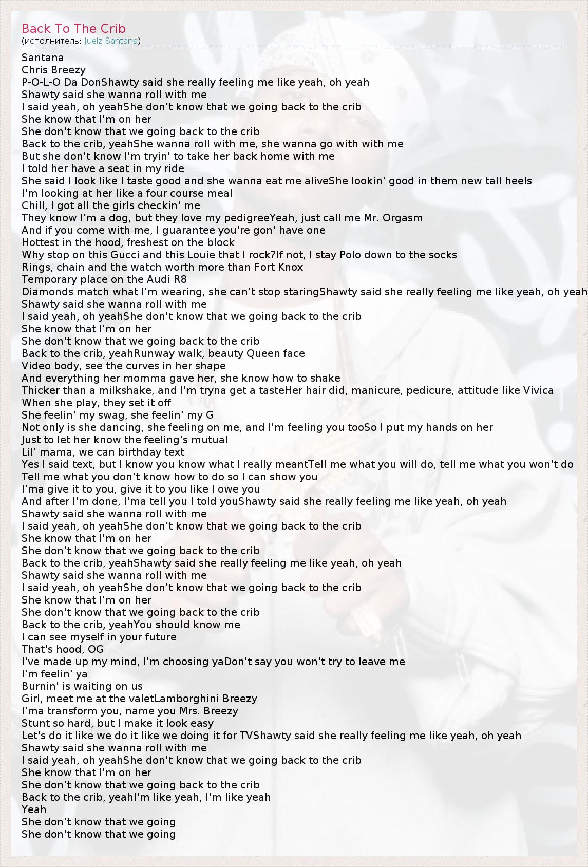 А как ты думаешь, о чем песня "Back To The Crib" ?
