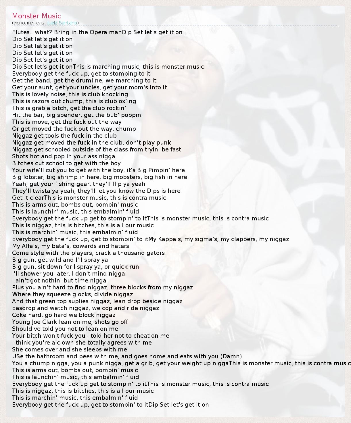 Everybody get the fuck up get to stompin' to itThis is monster music, this is contra music