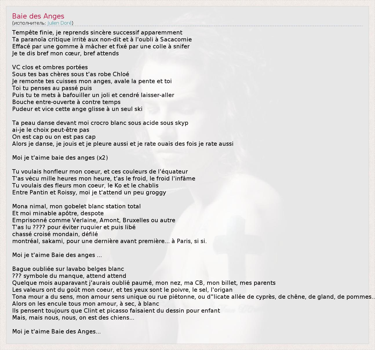 А как ты думаешь, о чем песня "Baie des Anges" ?