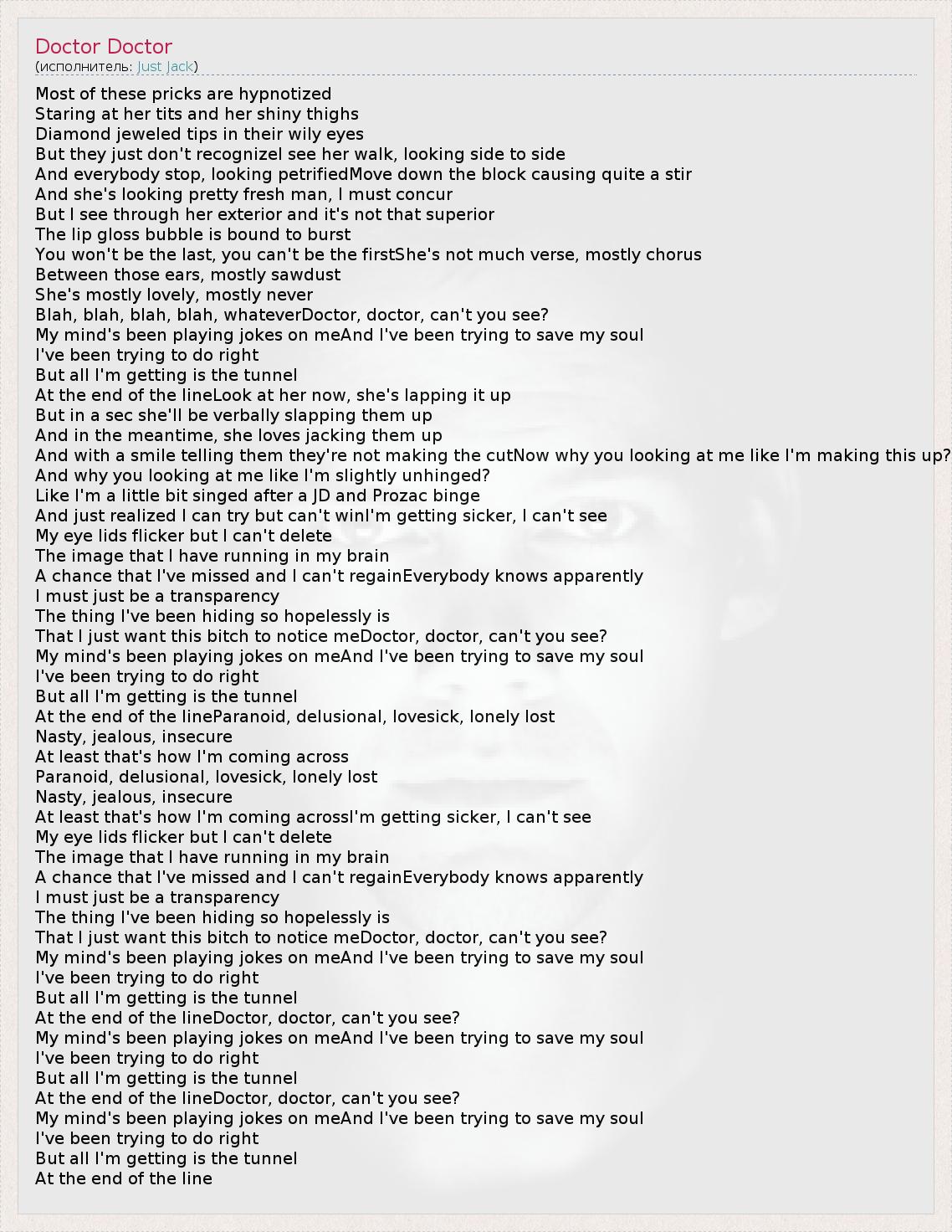 А как ты думаешь, о чем песня "Doctor Doctor" ?