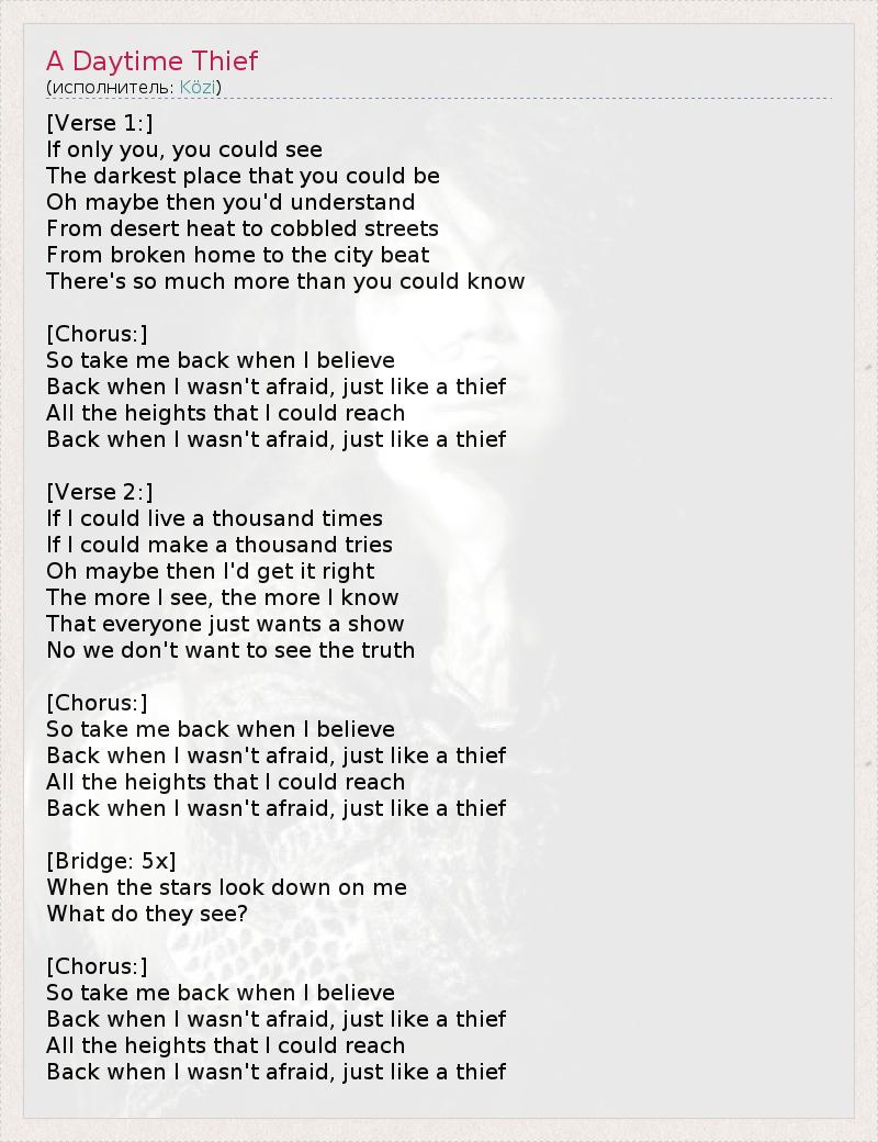 А как ты думаешь, о чем песня "A Daytime Thief" ?