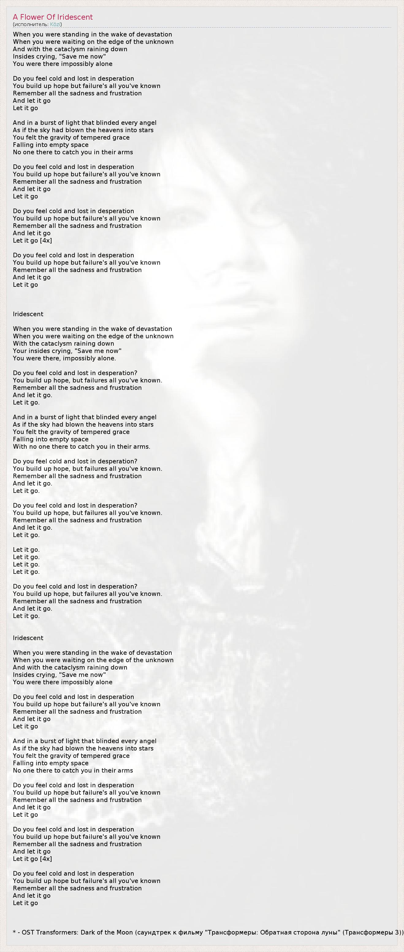 А как ты думаешь, о чем песня "A Flower Of Iridescent" ?