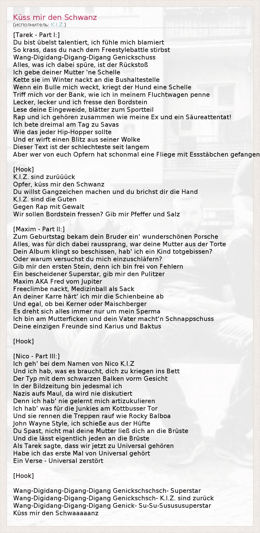 ГлавнаяИсполнителиK.I.Z.Küss mir den Schwanz