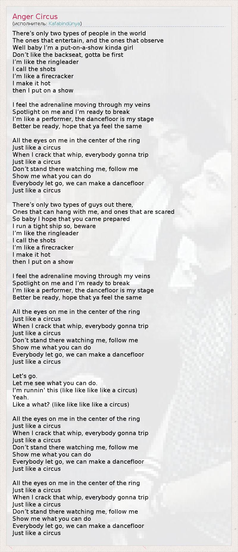 А как ты думаешь, о чем песня "Anger Circus" ?