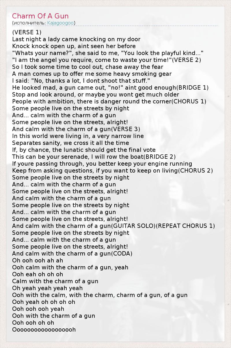 А как ты думаешь, о чем песня "Charm Of A Gun" ?