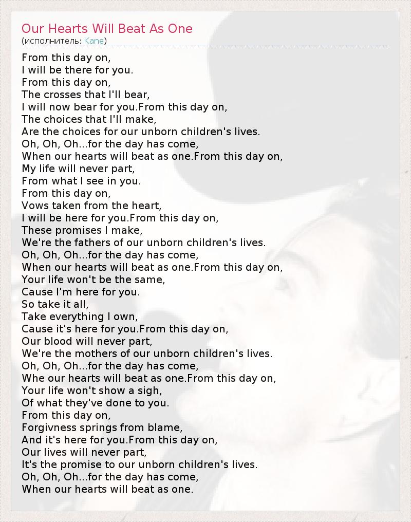 А как ты думаешь, о чем песня "Our Hearts Will Beat As One" ?