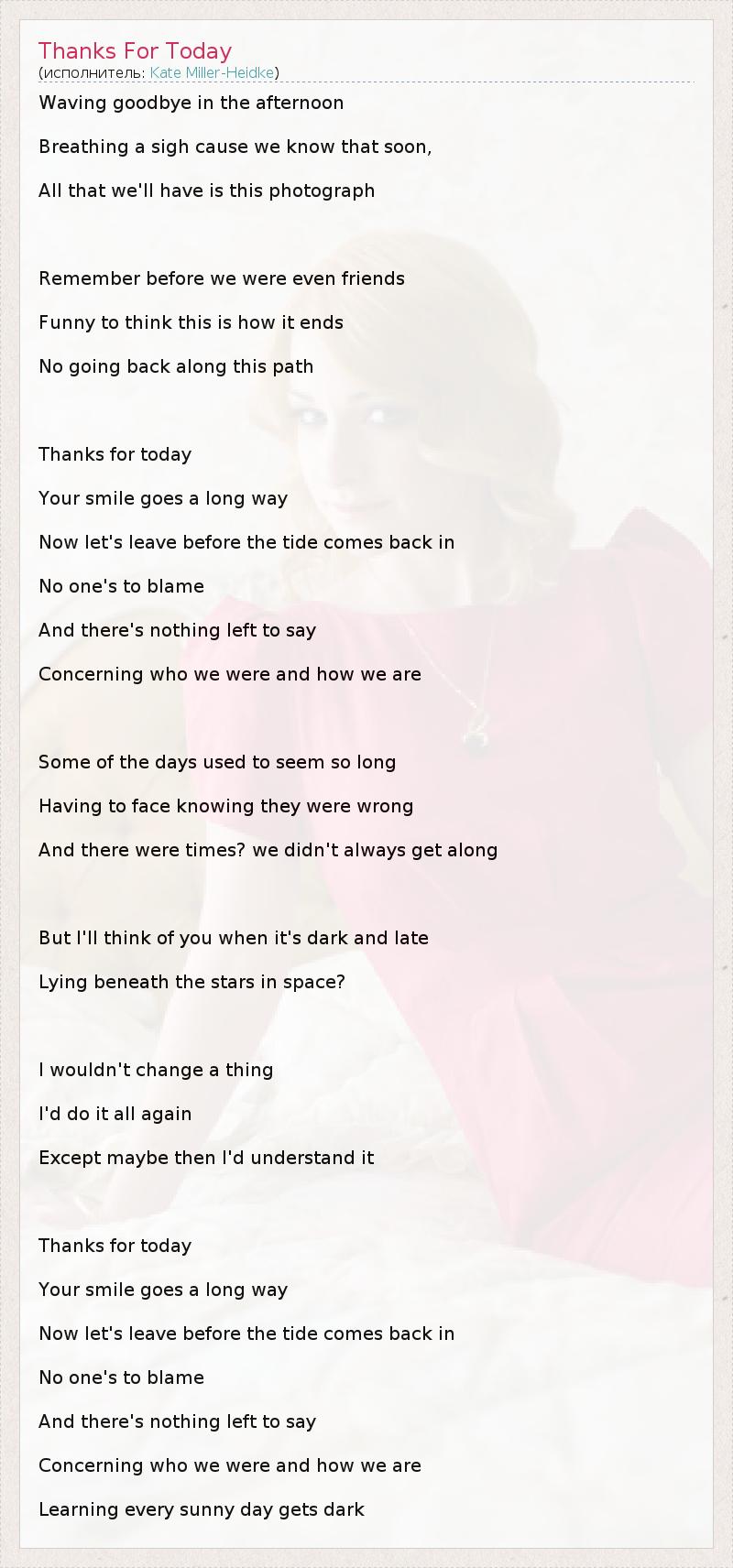 А как ты думаешь, о чем песня "Thanks For Today" ?