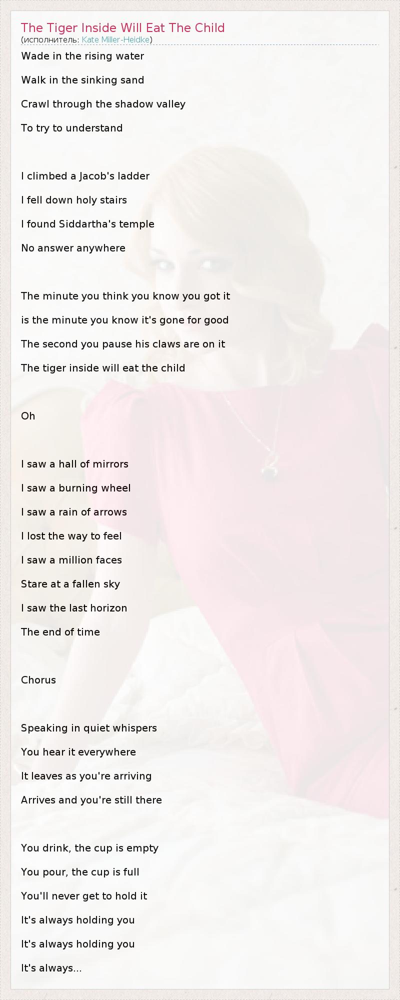 ГлавнаяИсполнителиKate Miller-HeidkeThe Tiger Inside Will Eat The Child