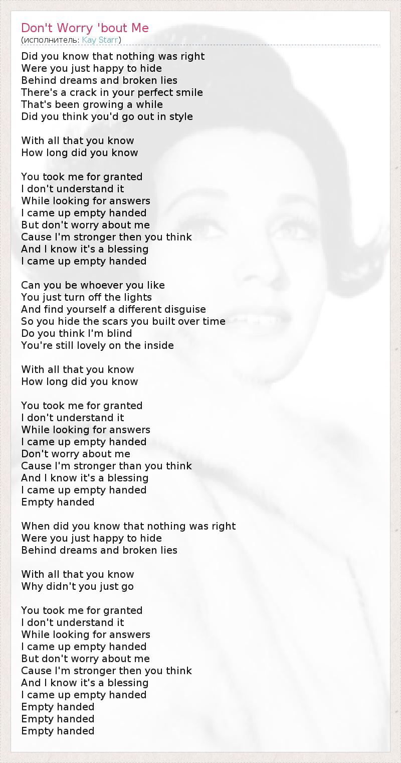 Но не волнуйся обо мне,