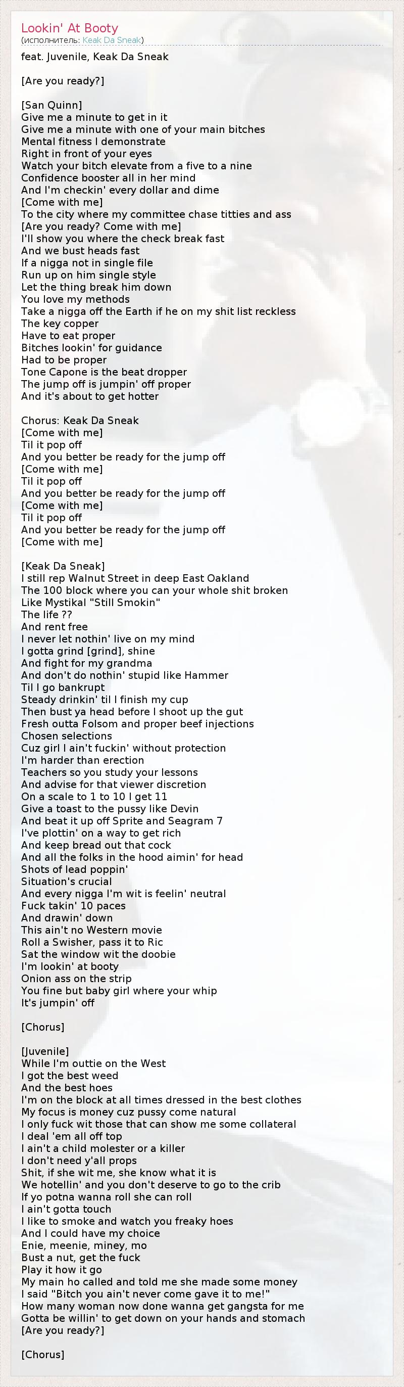 А как ты думаешь, о чем песня "Lookin' At Booty" ?