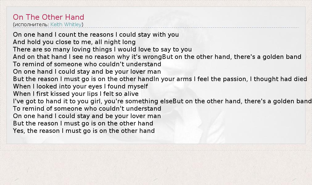 А как ты думаешь, о чем песня "On The Other Hand" ?
