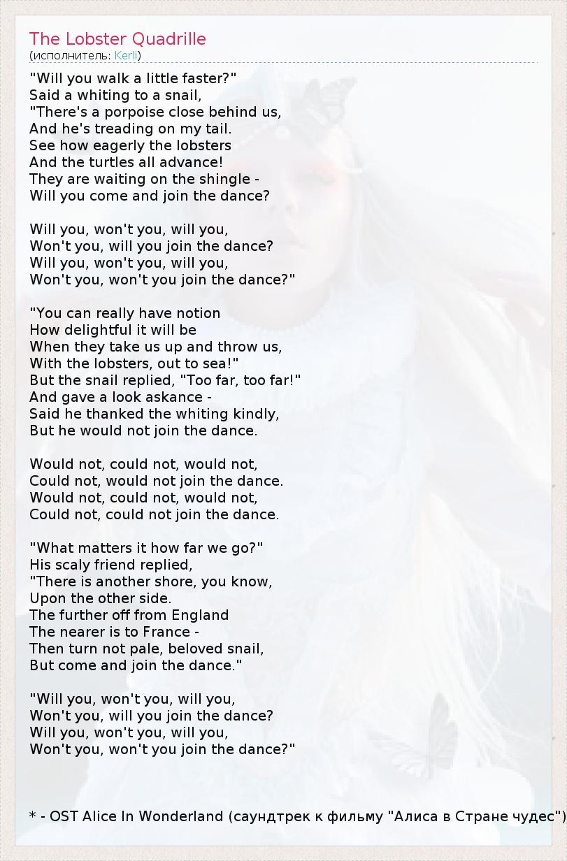А как ты думаешь, о чем песня "The Lobster Quadrille" ?