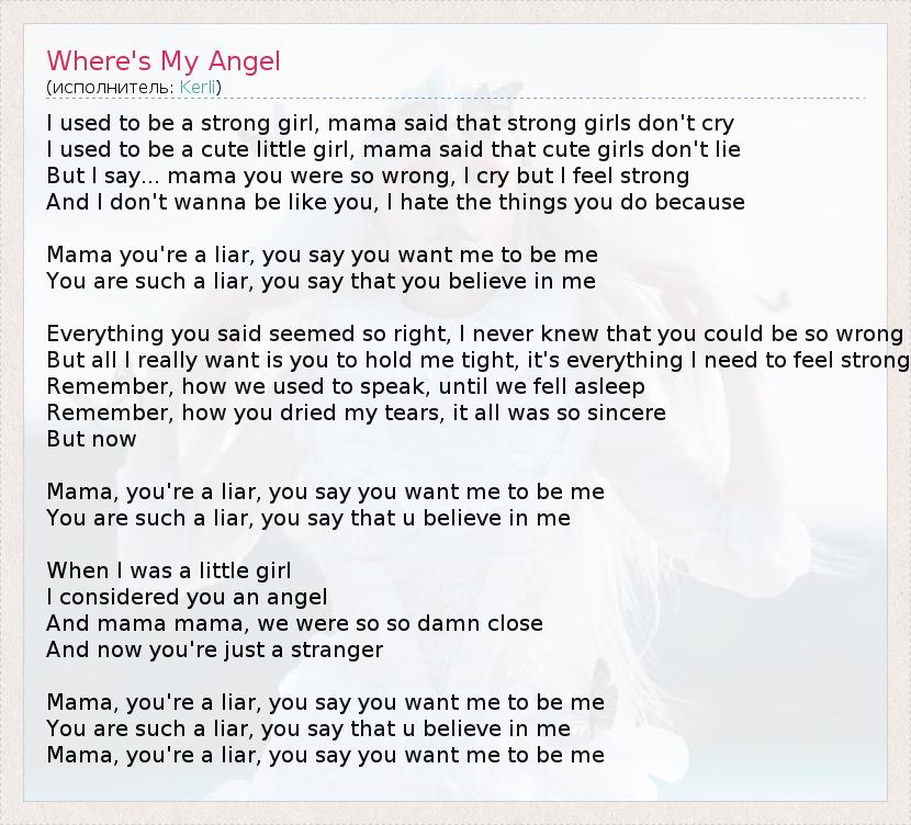 А как ты думаешь, о чем песня "Where's My Angel" ?