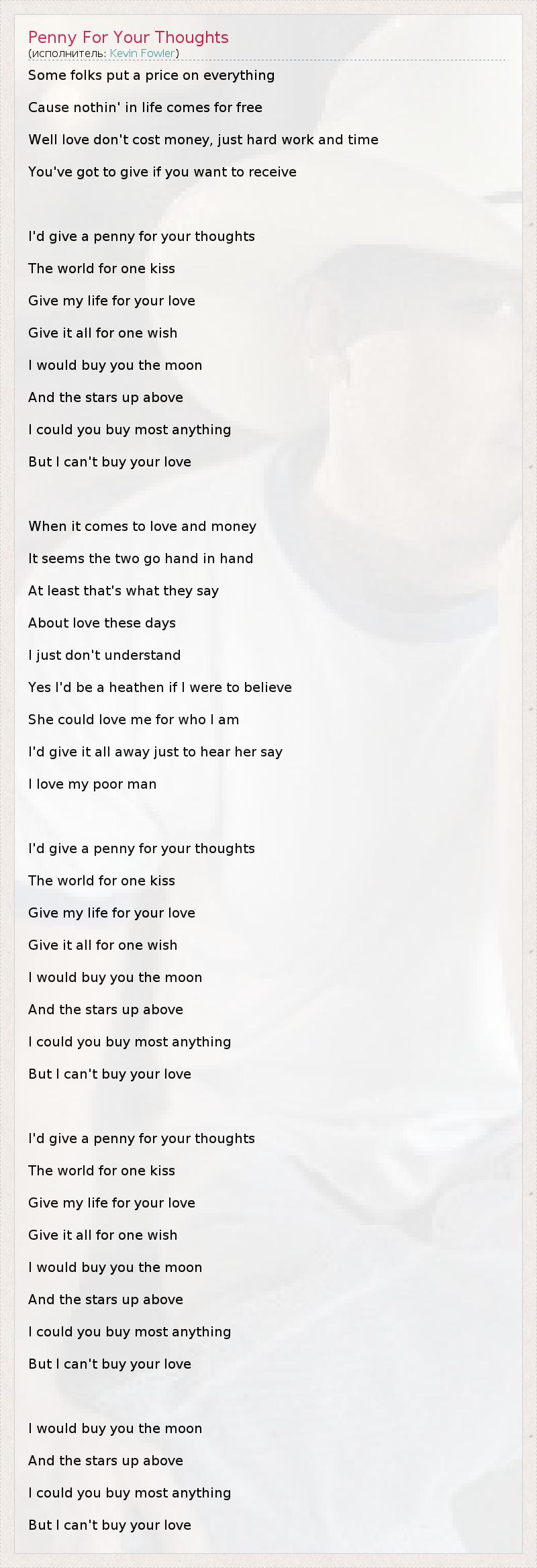 А как ты думаешь, о чем песня "Penny For Your Thoughts" ?