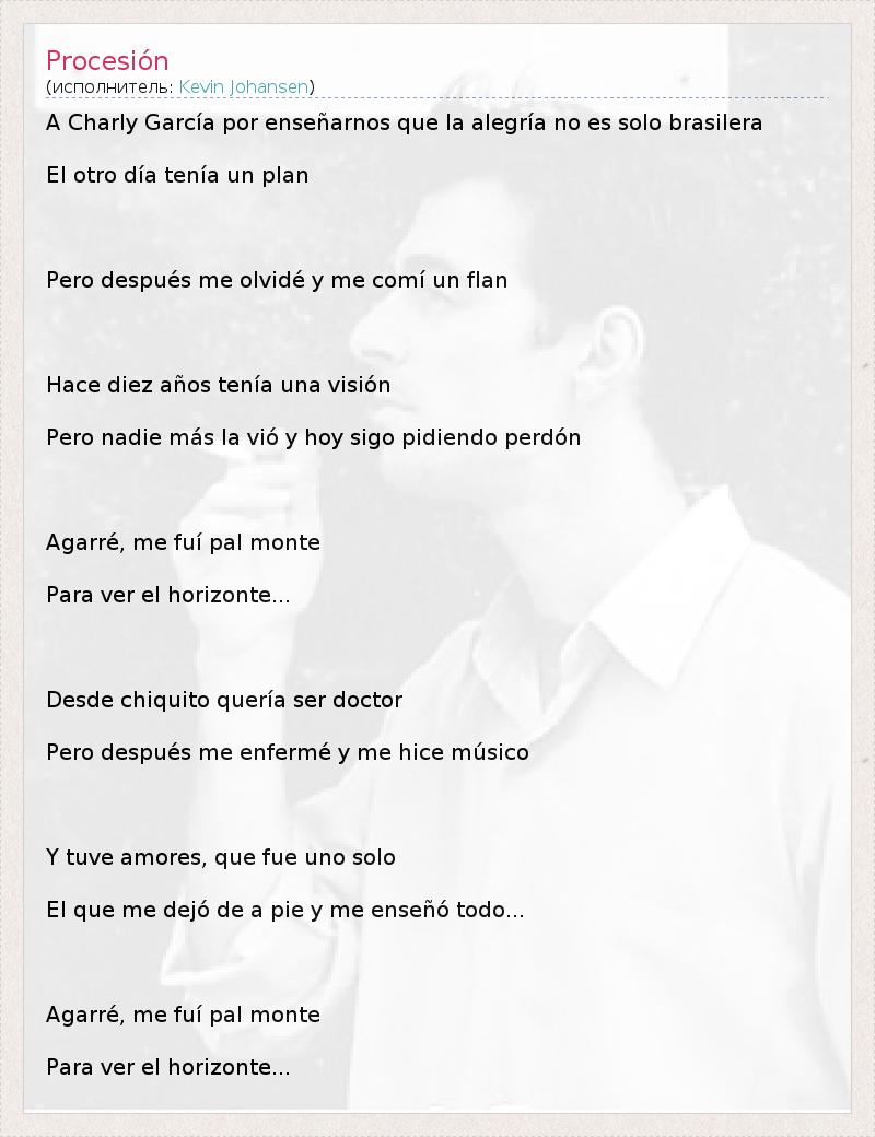 Это интересно:Кевин Йохансен (Kevin Johansen) - аргентинско-американский рок-музыкант. Родился в 1964 году в городе Файрбэнкс, штат Аляска. Отец Кевина - американец, а мать - аргентинка. До 12 лет Кевин жил в Сан-Франциско, а затем с семьей переезжает в Буэнос-Айрес. Здесь в середине 80-х он успевает поучаствовать в группе Instrucción Cívica, а в 90-м году возвразается в Нью-Йорк. Здесь он создает... продолжение
