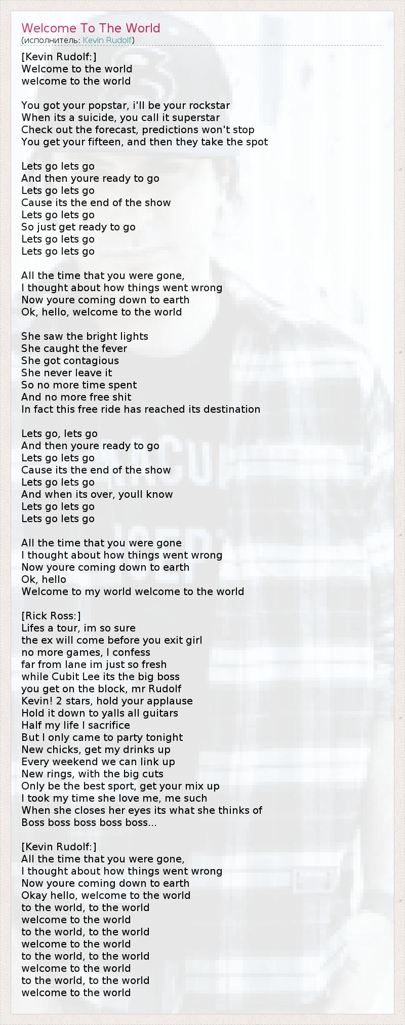 А как ты думаешь, о чем песня "Welcome To The World" ?