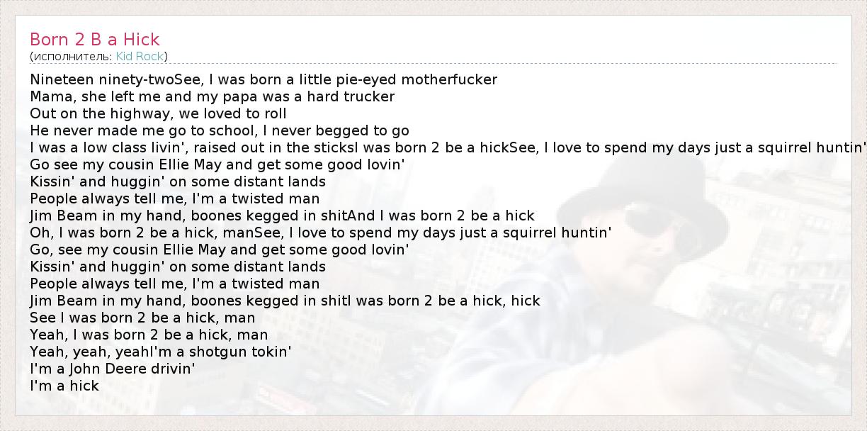 А как ты думаешь, о чем песня "Born 2 B a Hick" ?