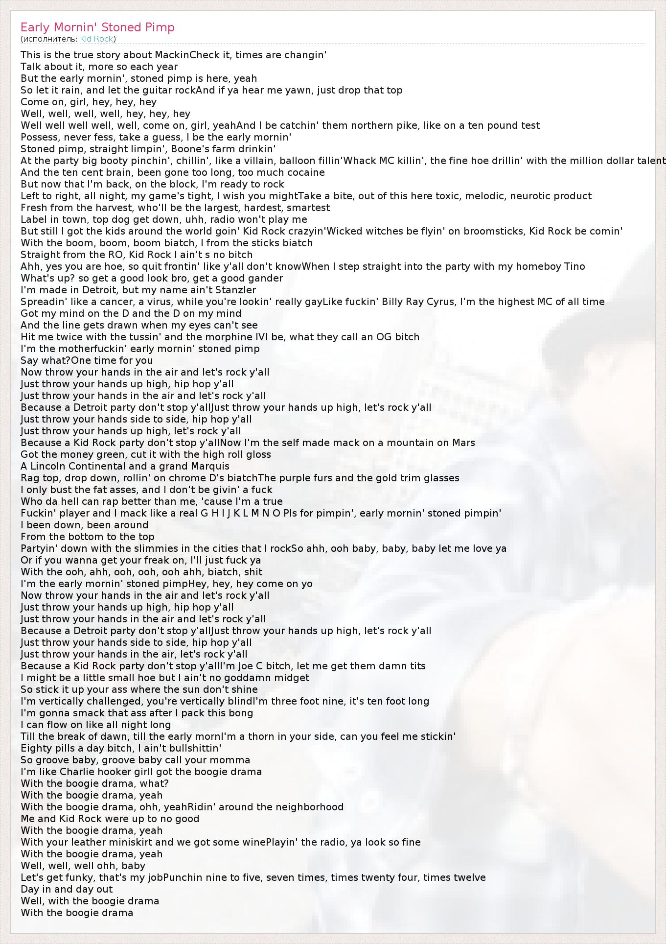 ГлавнаяИсполнителиKid RockEarly Mornin' Stoned Pimp