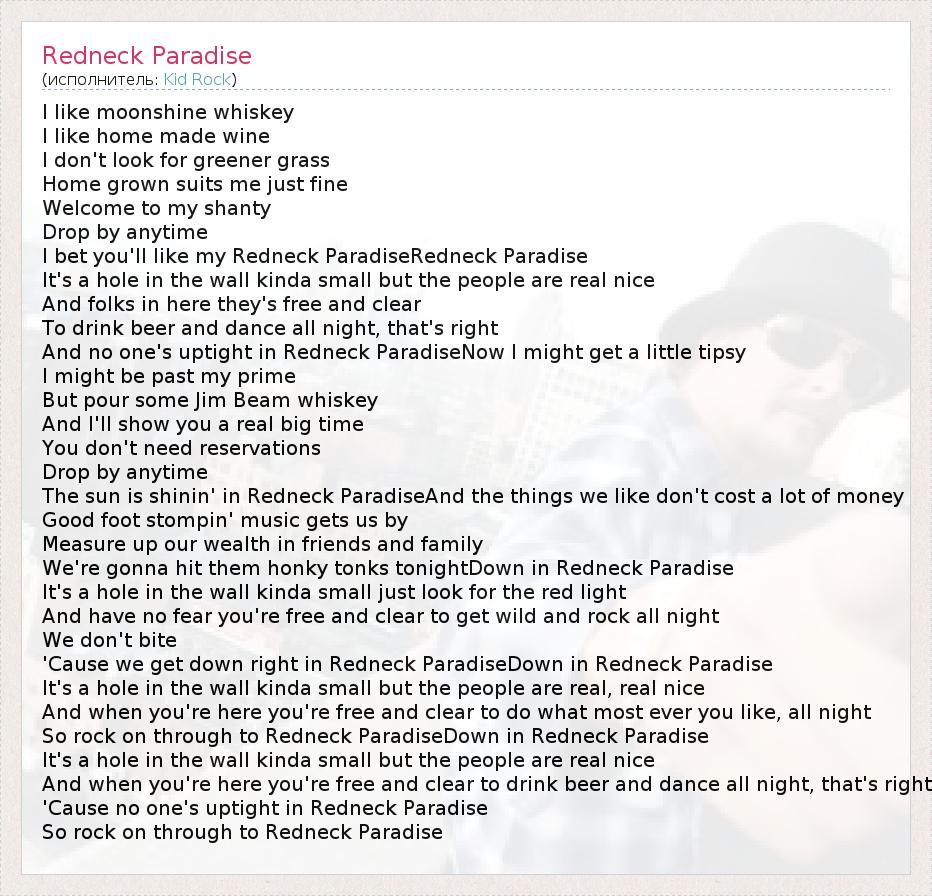 А как ты думаешь, о чем песня "Redneck Paradise" ?