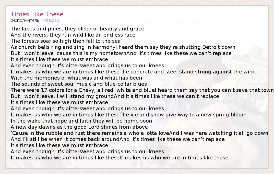 А как ты думаешь, о чем песня "Times Like These" ?