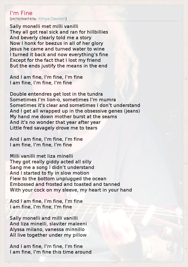 А как ты думаешь, о чем песня "I'm Fine" ?