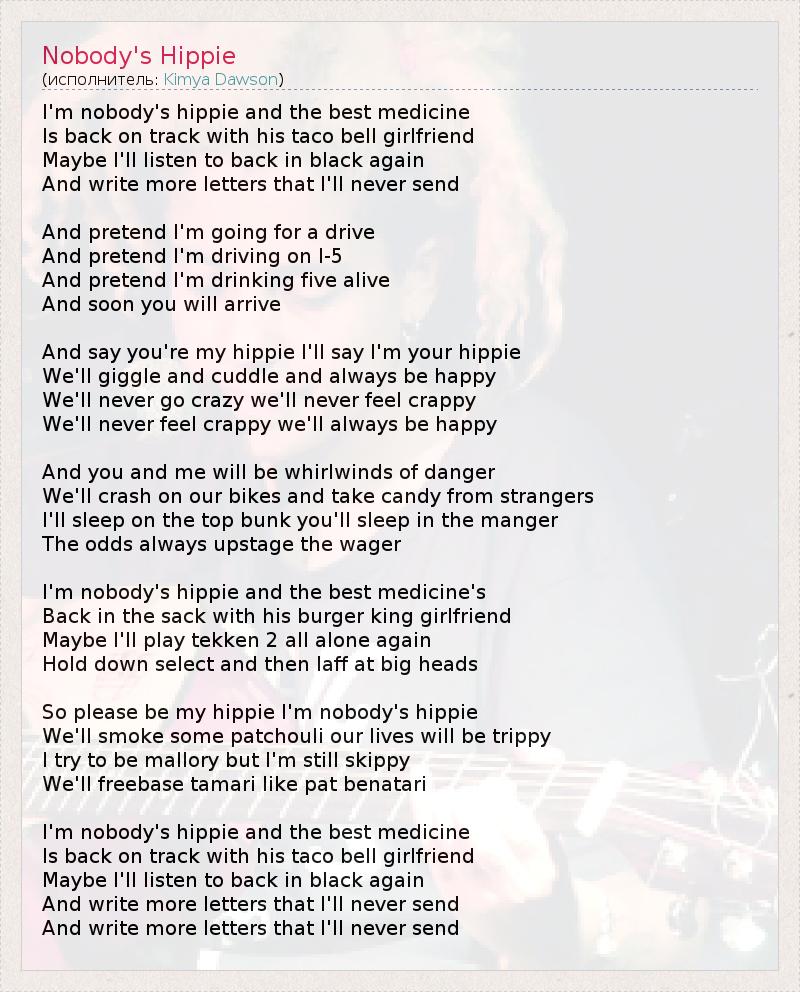 А как ты думаешь, о чем песня "Nobody's Hippie" ?