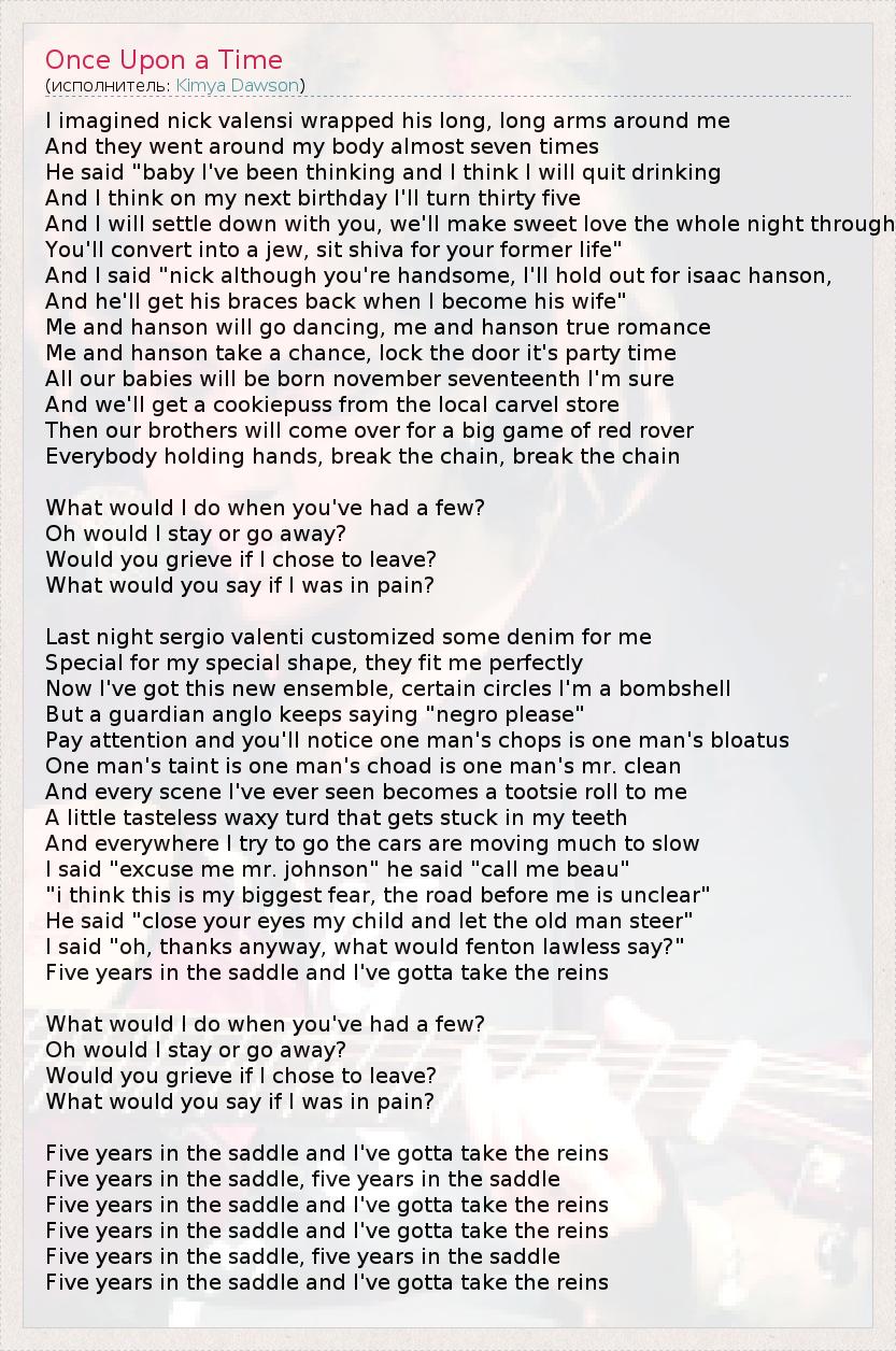 А как ты думаешь, о чем песня "Once Upon a Time" ?