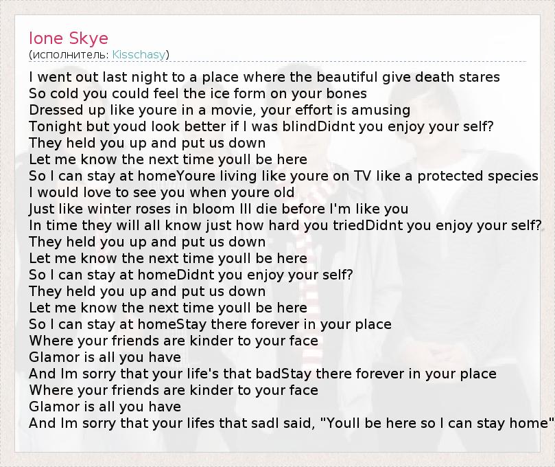 А как ты думаешь, о чем песня "Ione Skye" ?