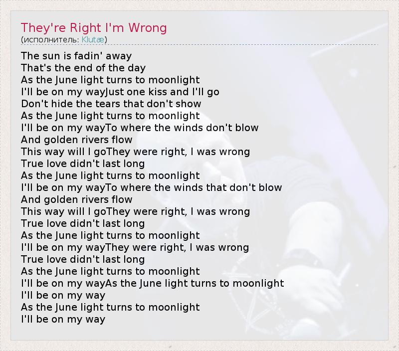 А как ты думаешь, о чем песня "They're Right I'm Wrong" ?
